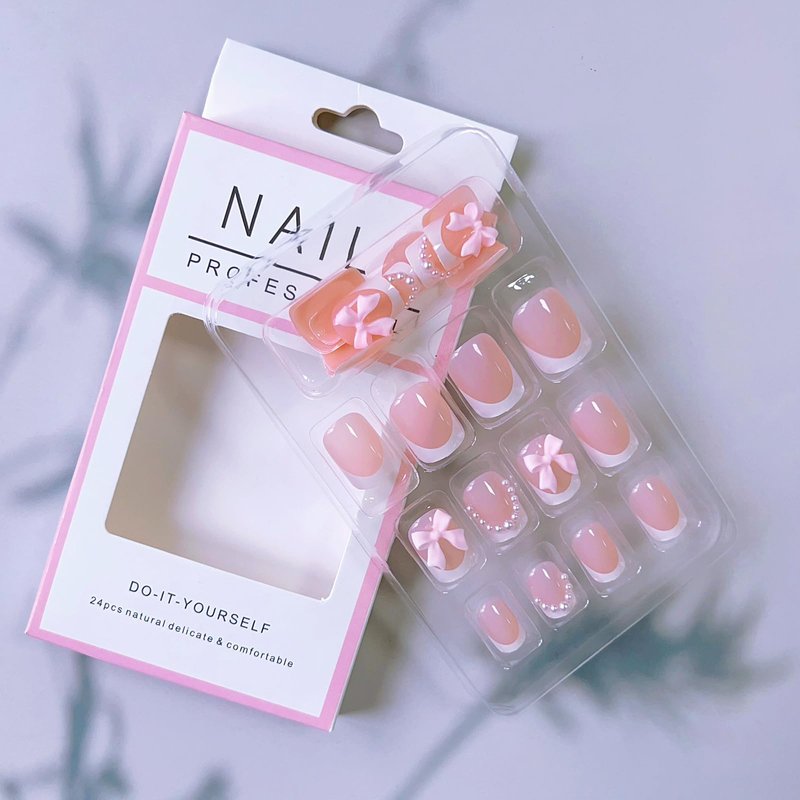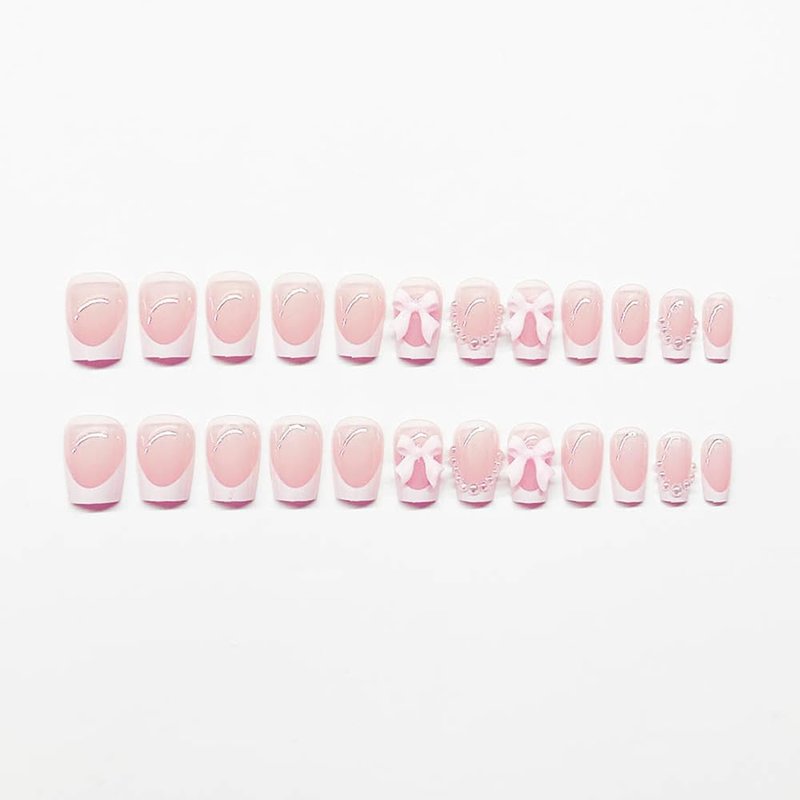 - Complete Set for Everyday Use: Includes 24 cute pink French tip press-on nails with bow pearl charms decorations in 12 different sizes, 24 double-sided adhesive stickers, a nail file, and an easy-use wooden stick for nail tip removal—perfect for enhancing your everyday look.