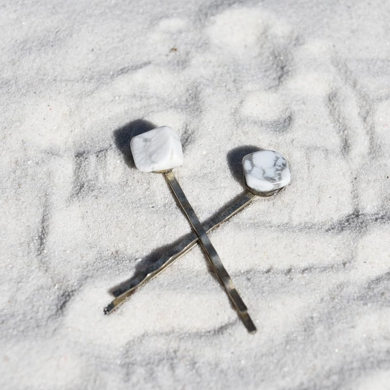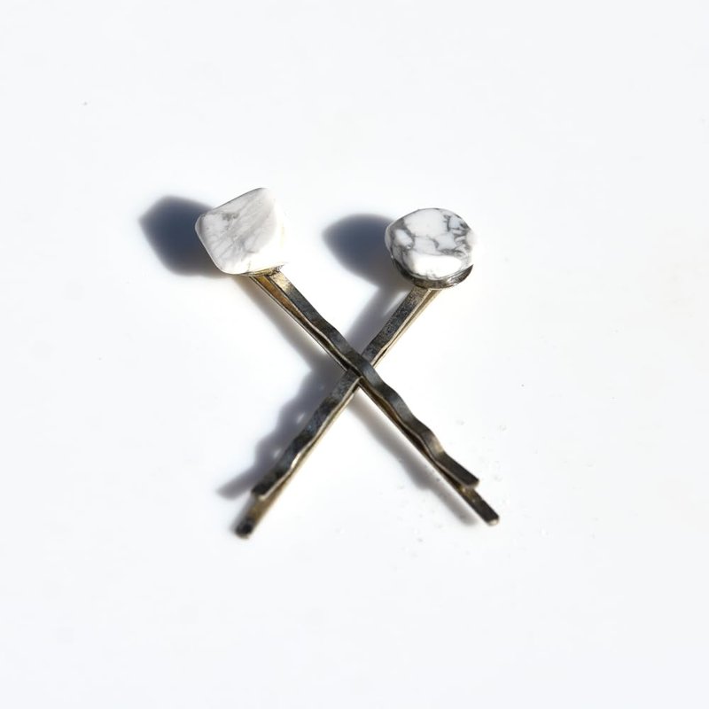Pair of genuine white howlite stone hair pins. Authentic white howlite stones adorn a delicate dainty hair pins. The hair pins are handmade and come from a smoke free environment. The hair pins measure: 51 mm x 11 mm or 1.99 inches x .44 inches
