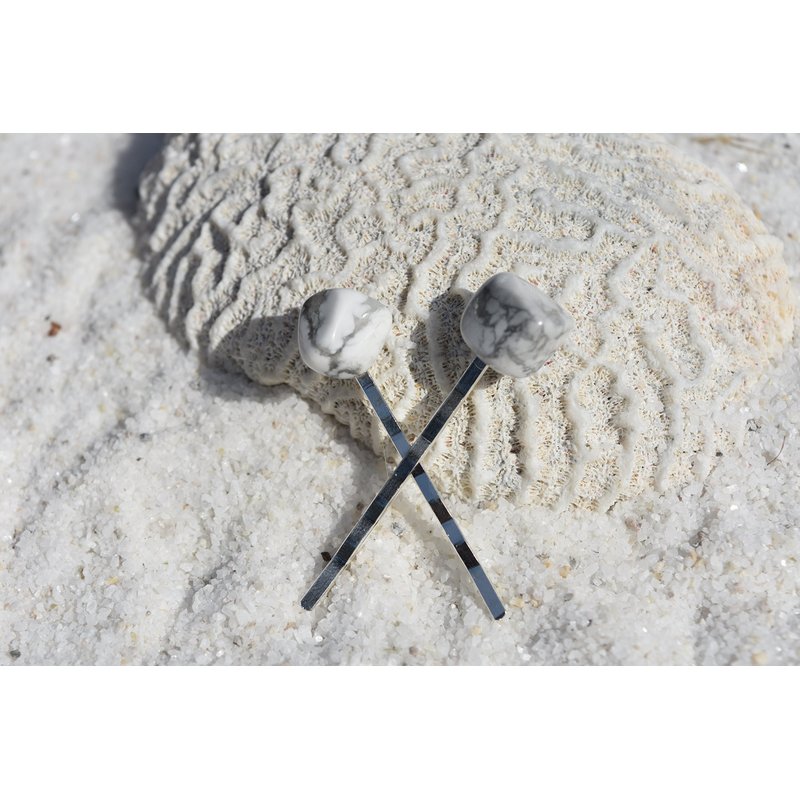 White Howlite Stone Hair Pins/Hair Clips (quantity of 2)