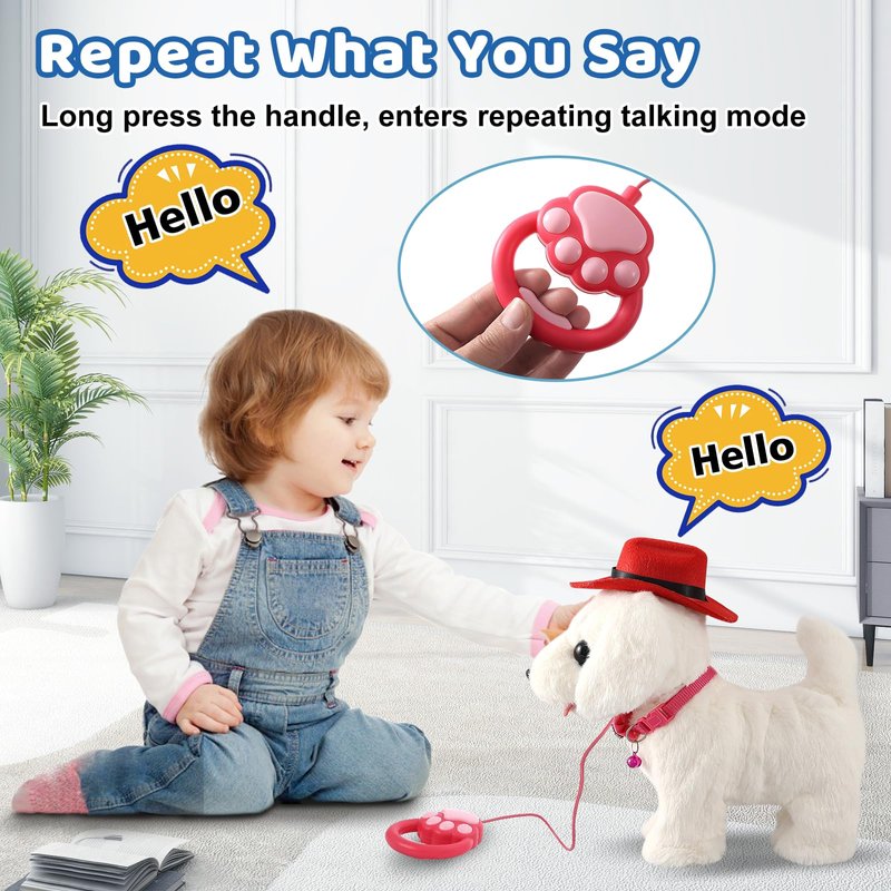 - Newly Labrador Walking Barking Dog:Walking Labrador Dog is different from ordinary. Walking with leash singing, licking, barking, wagging, nodding, it learns to talk like a real puppy. Wear a red hat, gently pat it on the head, woof, friendly and positive interaction. A great toy dogs for kids!