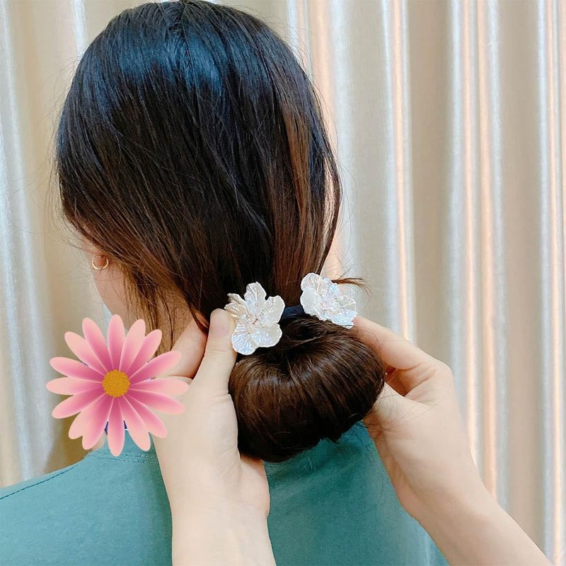 White Lazy Hair Dish Artifact Women Girl Braid Maintenance Ball Head Flower Hair Device Bud Head Shell Flower Bow Pearl Hair Pin Hair Accessories