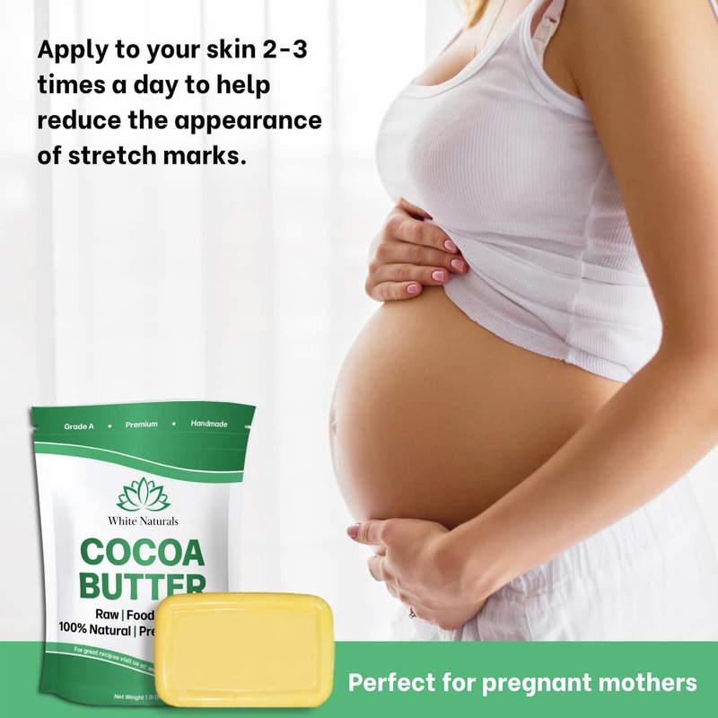 - Stretch Mark Prevention: Widely used by pregnant women, cocoa butter is believed to help prevent and reduce the appearance of stretch marks. Its emollient properties improve skin elasticity, keeping it supple and less prone to tearing as the body undergoes changes during pregnancy. By massaging organic cocoa butter onto the abdomen, thighs, and other areas prone to stretching, expectant mothers can support their skin's ability to adapt to pregnancy-related changes, resulting in smoother, more supple skin.