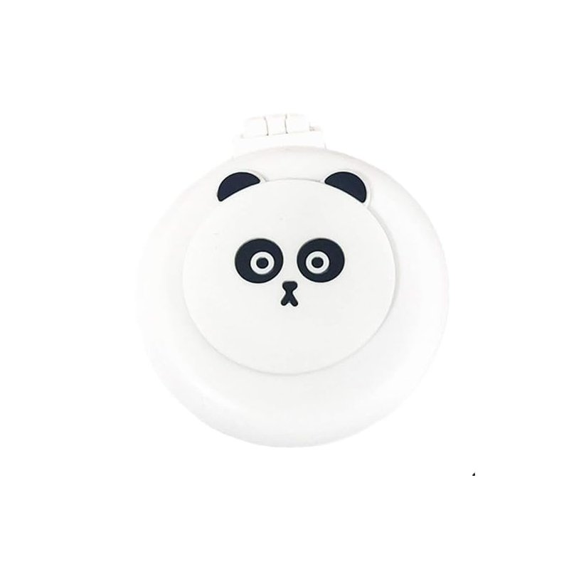 White Panda Mini Hair Brush for Purse, Pocket Hair Brush with Mirror for Girls, Cute Portable Foldable Travel Mirror Hair Brushes Round Hair Comb Compact Massage Comb, Hair Brushes (2H973)