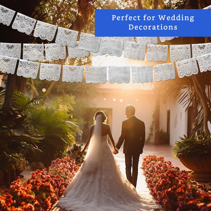 - Authentic Mexican Design: Add a touch of Mexico to your parties and wedding celebrations with these white Papel Picado banners. Each white mexican banner pack includes 5 banners with 10 unique partern designs per banner, providing a vibrant and festive atmosphere.