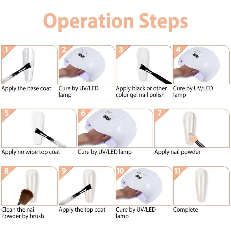 - EASY TO USE - Holographic chrome nail powder, easy to apply through correct use. Beginner-friendly nail decoration powder set, no extra or special nail art skill needed, just follow up the instructions and you will master its tricks. Tips: A base coat and top coat are required. Must use a no-wipe top coat. It is recommended to apply a layer of chrome nail powder after applying the top coat, and then apply a layer of top skin to avoid the nail powder peeling off.