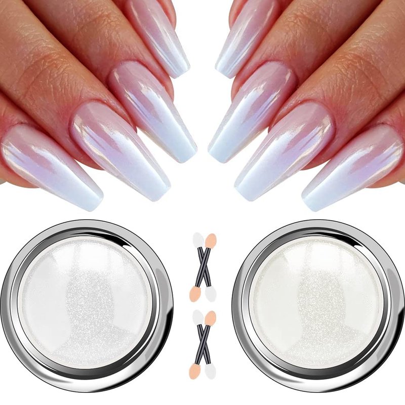 - What You Get- GJNL Nail Powder Collection Set Include: 1g x White Pearl Nail Powder, 1g x Ice Mermaid Iridescent Nail Powder, 4pcs x Sponge Sticks.