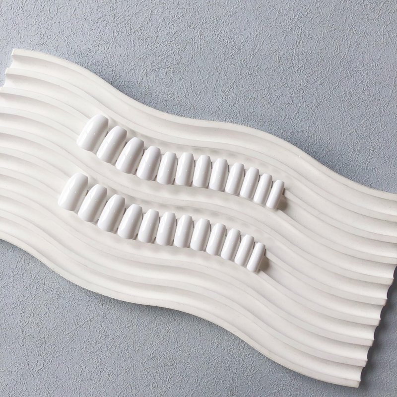 White Press on Nails Medium Coffin Nails,Glue on Nails Medium Length,Fake Nails Square Nails Press on,Short Acrylic Nails False Nails,Static Nails Trapezoid Shaped,Gel Nails Stick on Nails in 24 PCS