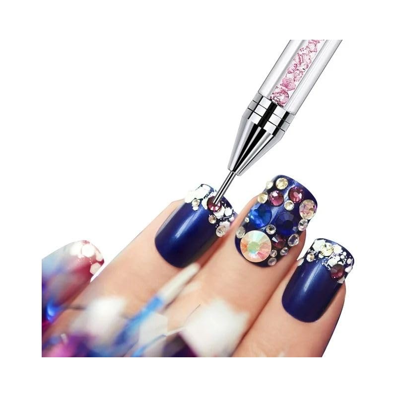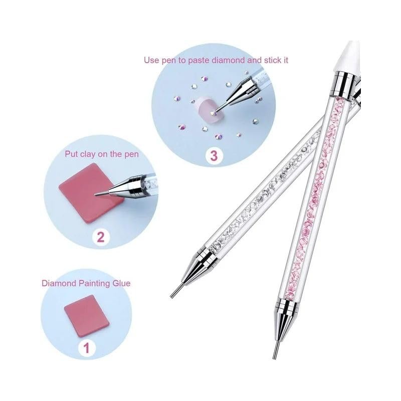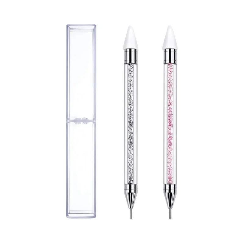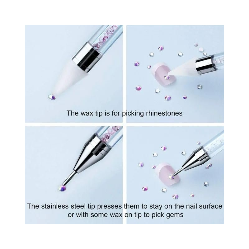 White Rhinestone Picker Dotting Pen, Rhinestone Tool With 2 Extra Wax Tips for Nail Art DIY,Dual End Nail Rhinestone Picker Tool with Crystal Beads Handle for Gems,Stones, Crystals Nail Art and Polish