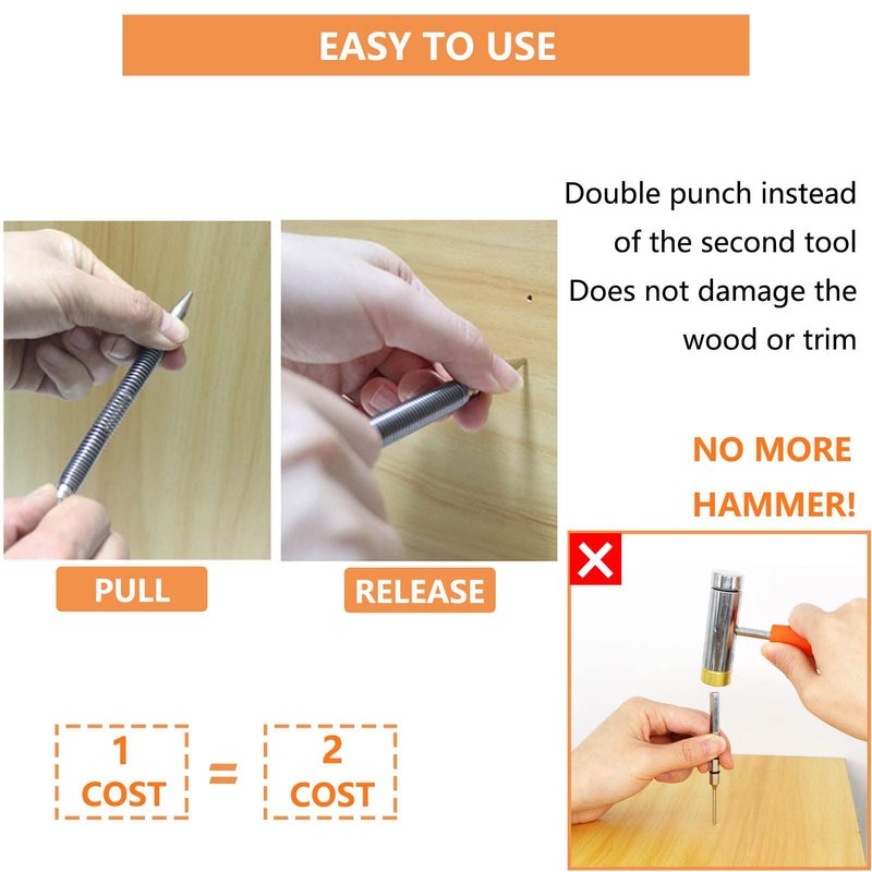 - ➤Set Includes: The pack includes one dual head nail setter with head sizes of 1/32″& 1/16″and one hinge pin remover punch
