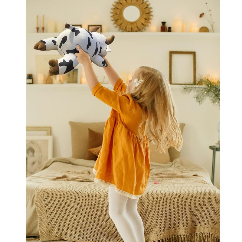 - Material - Short plush filled with PP cotton. Each stuffed cow’s pattern is different. Like real cows, no two cows are the same