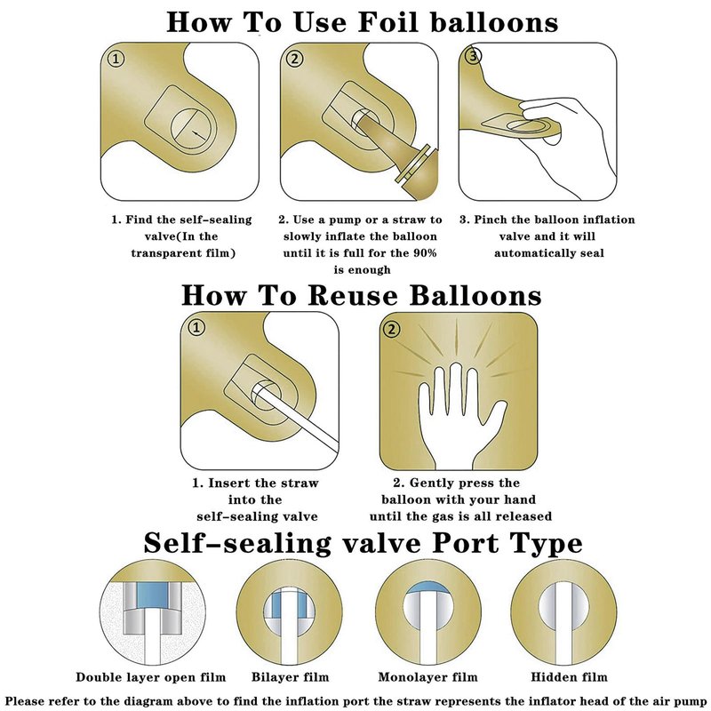 - Inflating Instructions: The balloons fill with air or helium(NOT included), use a transparent balloon adhesive attached to the wall. Please do not overfill the balloons and also avoid sunburn, overheat, pointed object and excessive friction.