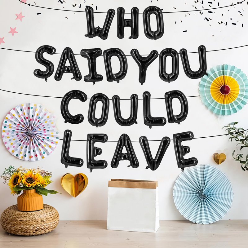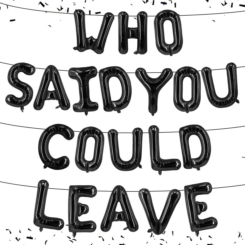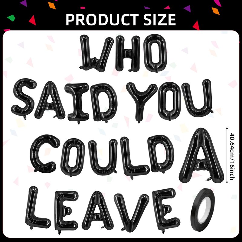 - Package: "Who Said You Could Leave" balloon banner consists of 20pcs letter balloon, (You need to assemble it yourself to become a balloon banner)It comes with 32 foot silver string roll.