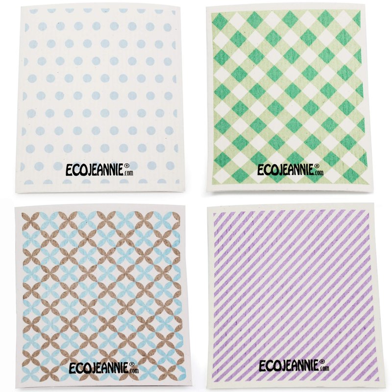 Introducing Ecojeannie Sponge Cloths - the ultimate cleaning solution for your kitchen, countertops, bathrooms, and household items. Unlike any other cleaning cloth on the market, these cellulose sponges are crafted primarily from wood fibers, making them an eco-friendly choice that outperforms plastic alternatives. Our cellulose sponges are produced using a less toxic manufacturing process, ensuring a smaller environmental footprint, and they naturally break down in landfills. Embracing the perfect balance of absorbency and durability, these sponge cloths effortlessly carry water, soap, or any liquid to provide streak-free cleaning results. You'll be amazed by how quickly and easily our sponge cloths absorb liquids, and with a simple wringing action, they release the liquids, ready for the next cleaning task. These sponge cloths are tear and abrasion-resistant, ensuring they can be reused over and over again, substantially reducing waste compared to disposable paper towels. Washing our sponge cloths is a breeze! Simply toss them in the dishwasher or washing machine with your normal loads. Please note that using chlorine bleach or products is not recommended. Hand-washing is also an option, and after cleaning, just let them air dry; tumble drying is not necessary. Rest assured, our Ecojeannie Sponge Cloths are free of petroleum and GMO materials, furthering their eco-friendly credentials. Each Swedish Sponge Cloth is designed to be used repeatedly, offering an impressive lifespan of up to 200 washes or more, equivalent to over 9 months of dependable use. To keep your sponge cloths fresh and clean between uses, a quick trip to the dishwasher's top rack for a cleaning cycle will do the trick. Experience the unmatched efficiency and sustainability of Ecojeannie Sponge Cloths, and say goodbye to wasteful paper towels for good!