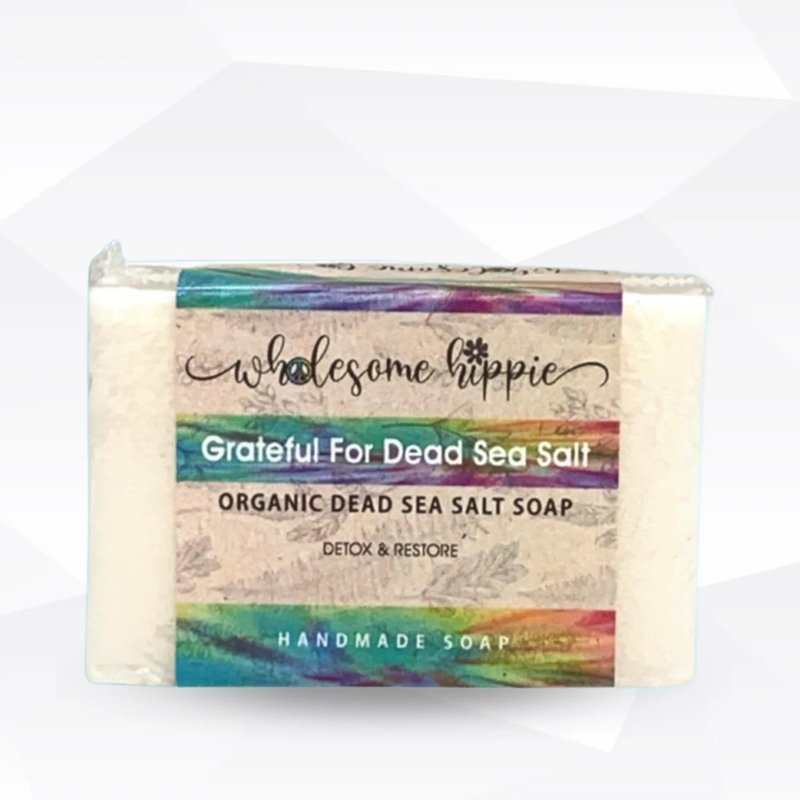 Wholesome Hippie’s Organic Grateful For Dead Sea Salt Soap with African Shea, Cocoa and Mango Butters is a soap that commercial soaps can't match! A Natural Exfoliator - Detox, cleanse, heal and tone your skin all at once! Our handmade soap is carefully crafted without any harsh ingredients, making it a treasure trove of indulgence.