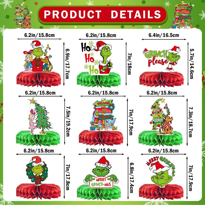 - Material: the Christmas table decorations are made of quality card paper, which is thick and sturdy, not easy to break or tear.The Christmas themed table decorations are printed with double-sided patterns,perfect for Christmas holiday decorations,green monster party decorations!