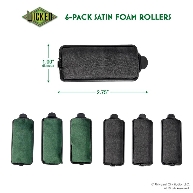 Wicked Elphaba 6PK Satin Rollers - hair rollers - foam rollers - heatless hair curlers - Scunci by Conair