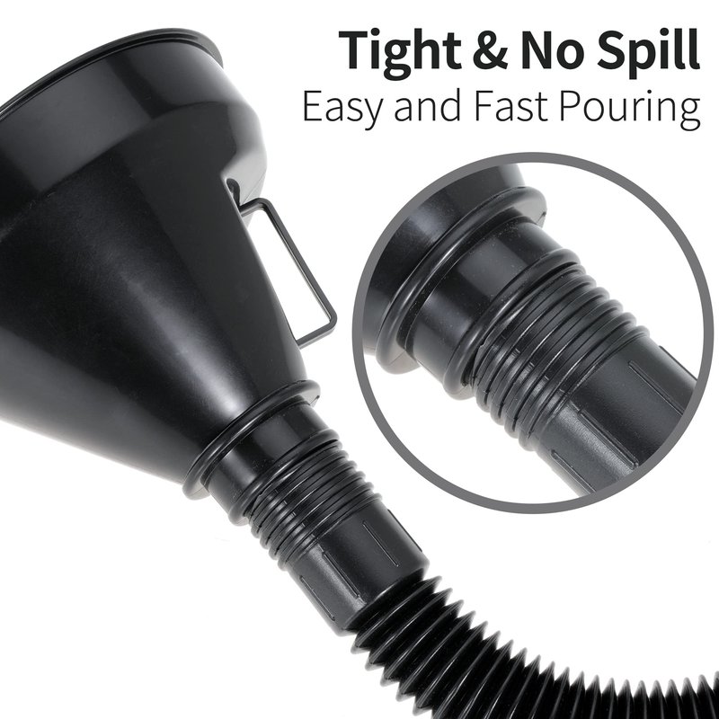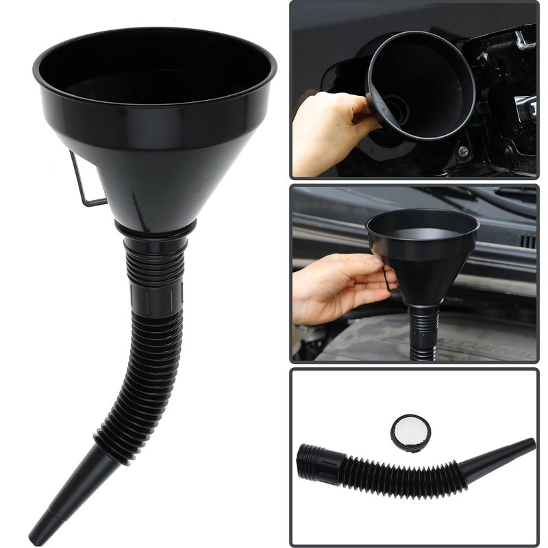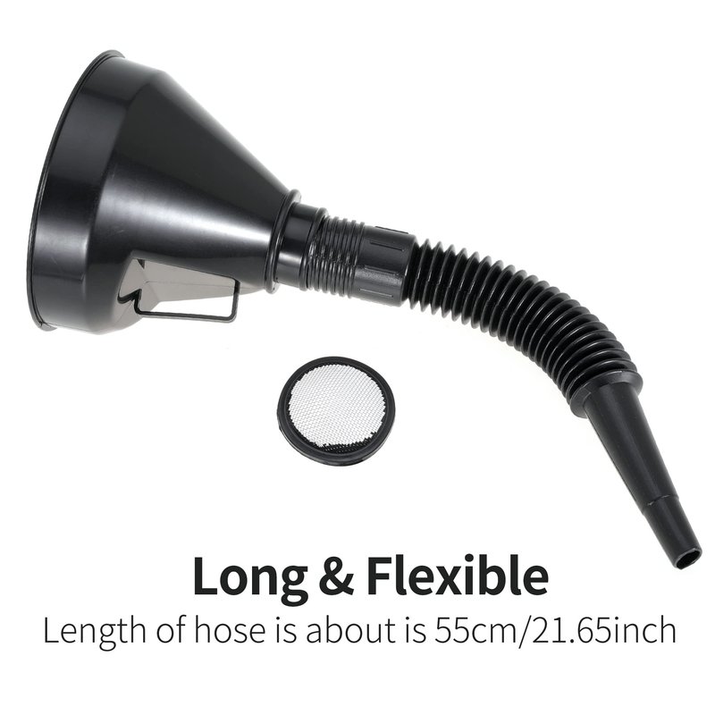 Wide Mouth Oil Funnel with Flexible Extension Nozzle Hose with Handle Mesh Screen Filter for Cars Motorcycles Engine Oil Kerosene Gasoline Gas Fuel Diesel Water Fluid Coolant Liquid Black 1PC (1)
