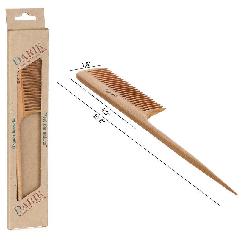 - Darık Profesyonell Ahşap Wide Tooth Wooden Comb: Handcrafted with care, this vintage-style comb offers gentle detangling and smooth styling. Ideal for thick and thin hair types, it's eco-friendly and anti-static for hassle-free grooming sessions. Experience hair care luxury with our premium quality wooden comb.