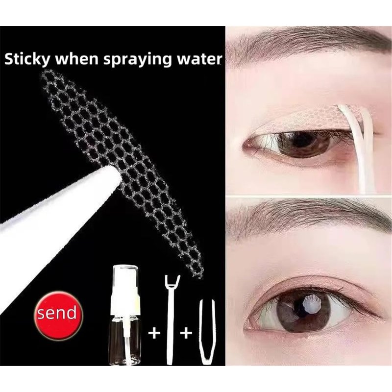 - Caution Water must be sprayed on the surface of this product to make it fit tightly to the eyelid. Its best feature is that it is more invisible than ordinary double eyelids.