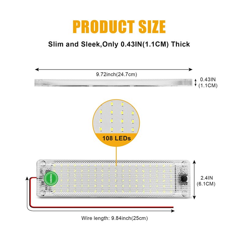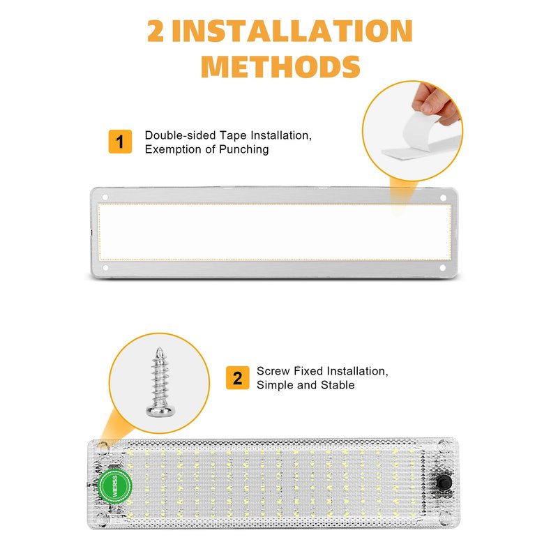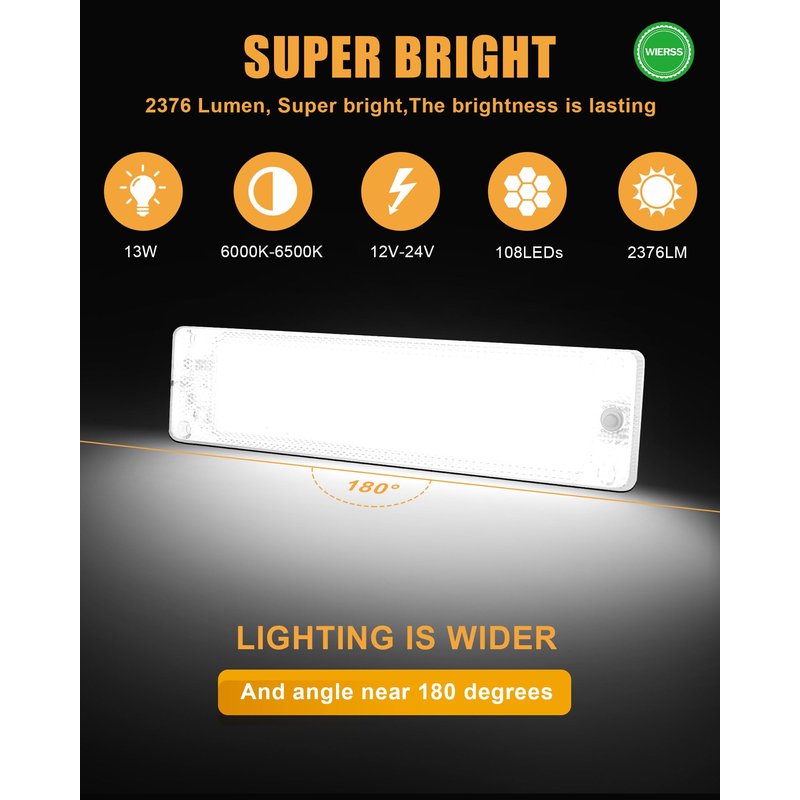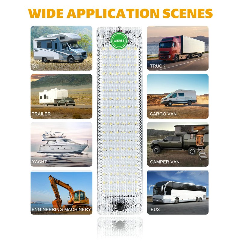 - 👍 2376 lumens, Super bright. This 12 volt led lights for rv interior, light is uniform and clean, no shadow, no dark area. WIERSS 12v led light bar, strong reliable Performance, 60000+ hours usage time, surpass many similar products.