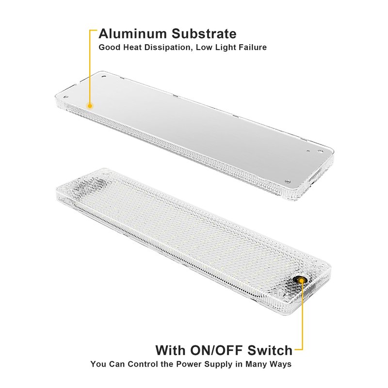 - NOTICE: This light is very bright, when working normally, the temperature of the front shell of the lights is 77℉(25°C) to 95℉(35°C), and the temperature of the back bottom plate is 95℉(35°C) to 113℉(45°C). This is a normal heat range, but when you touch the back plate with your hands, you can feel the heat. So this light is more suitable as a ceiling light or top lights, fixed use.