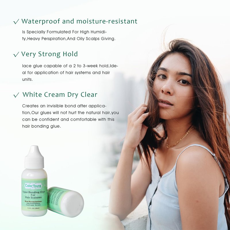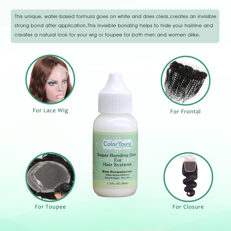 - Specifically Designed:ColorYoung Lace Glue is specially formulated,latex-free safe water-based glue,erfect for clients with sensitive skin,and offers maximum wear (4+ weeks) hold times,provides a comfortable and clean wear experience for users.