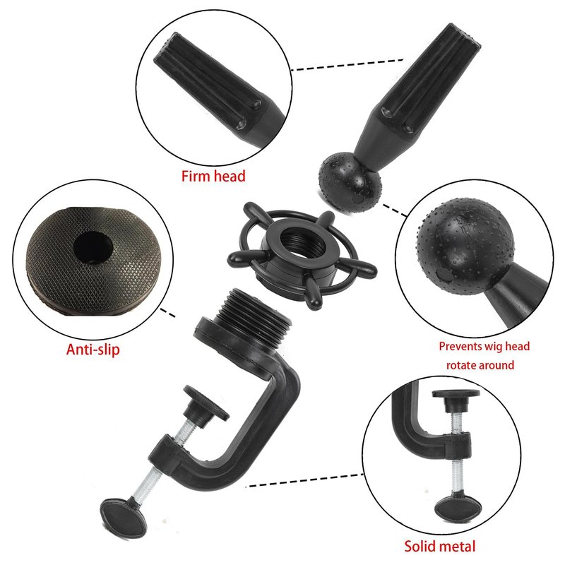 Wig Mannequin Head Stand Head Stand Cosmetology Manikin Training Head Stand Holding Holder Clamp Stands C-Clamp Holder Practice Hand Stand Adjustable Rotary Desk Table Clamp Holder Black (1 PCS)