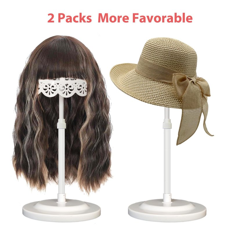 Wig Stand 2 Pack Adjustable Height Portable Wig Holder White Wig Head Stand Hat/Cap/Wig Holder Display Stand Wig Stands for Multiple Wigs