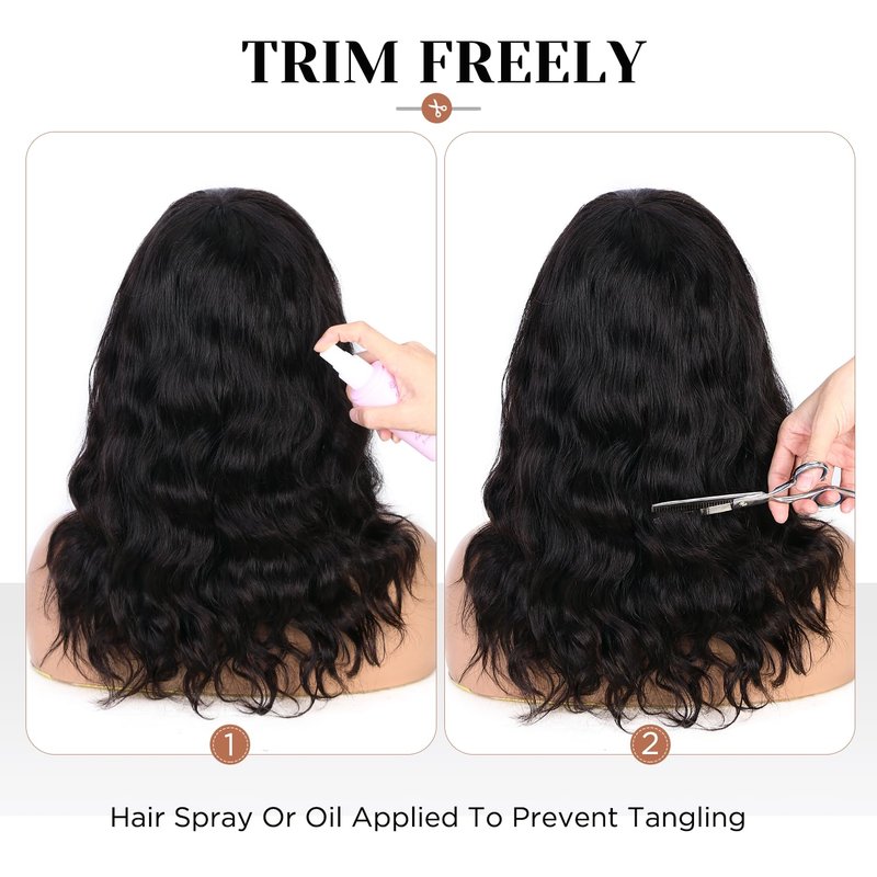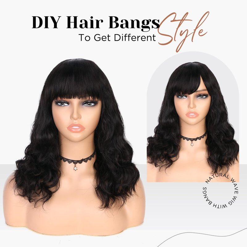 - 【Natural Look】The Short Black Wavy Human Hair Wig With Bangs Provides a Natural Look And Blends Well With Your Own Hair. It's Perfect For Women Who Want To Achieve a Stylish Look. No Glue No Gel, Easy To Wear And Take Off, You Can Trim And Restyle The Bangs As Liking.