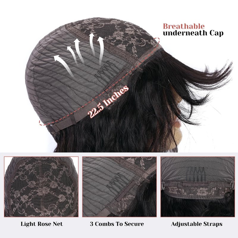 - 【Wig Details】The Natural Wavy Wig Is 16 Inch, Natural Black With Manageable Bangs. Breathable Cap Is Suit For Any Season, 2 Adjustable Straps Inside Making It Fit Most Women Heads. 3 Combs To Secure, Wig Cap Won't Slide Away.