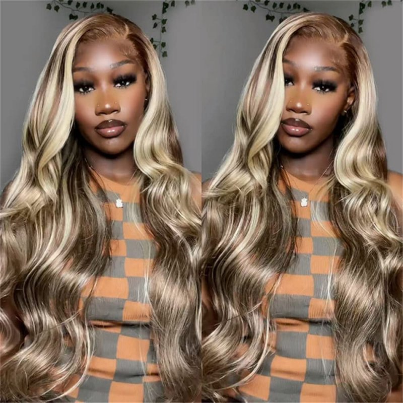 - ❤Brown Wig With Highlight Blonde Lace Front Wigs Human Hair:P4/613 blonde lace front closure wigs,is a popular form of hair.it’s never too early to begin planning your P4/613 blonde human hair wig for all seasons.wearing these hair to stand out in the crowd! we collected cuticle aligned unprocessed hair.only living with one-directional cuticle avoid tangle,only with steam process to make good wave and texture, unprocessed human hair soft & shiny with highest elasticity.