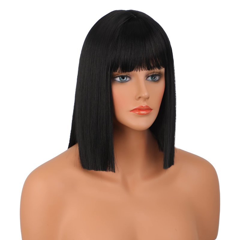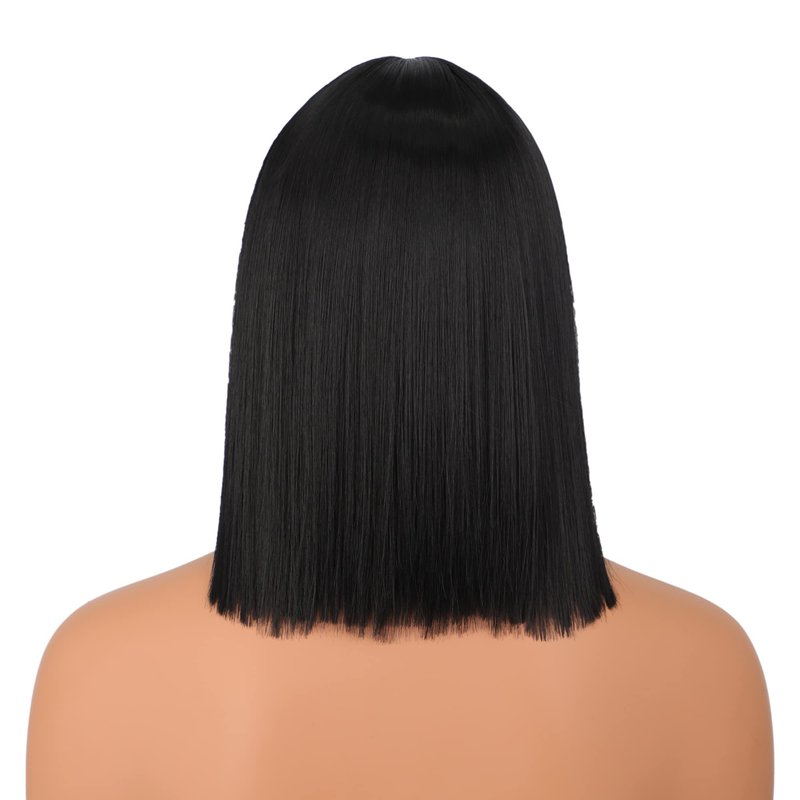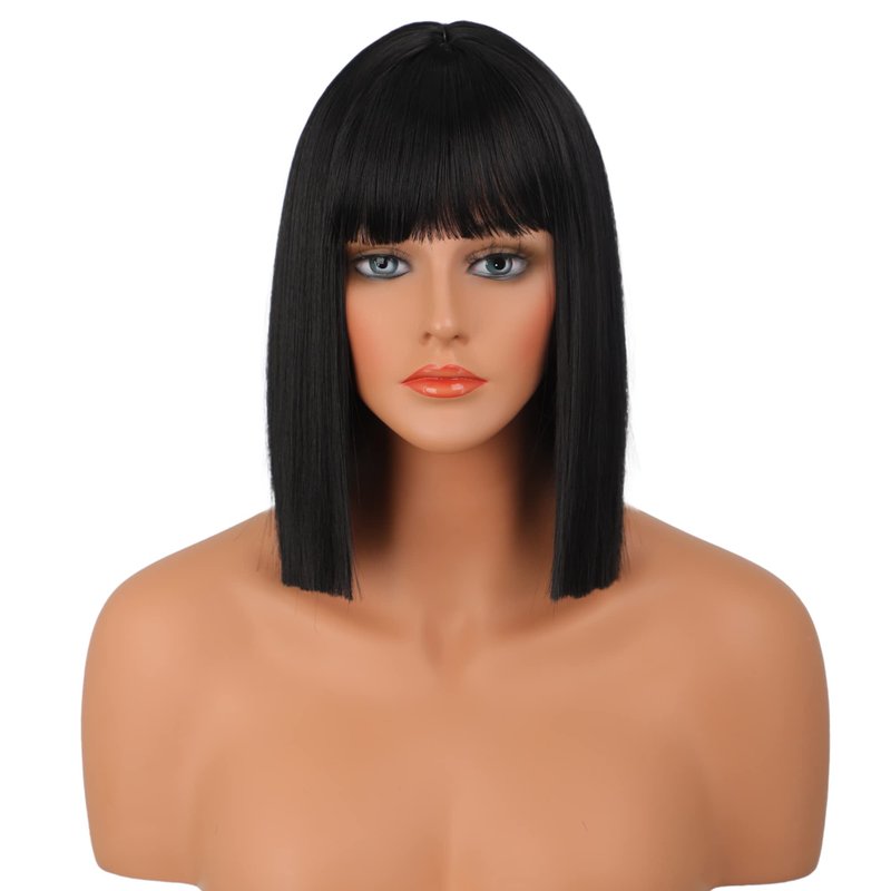 Wiginway Short Bob Wig for Womem, 12'' Short Black Wigs with Bangs, Natural Looking Soft Synthetic Straight Wigs for Party Cosplay Halloween