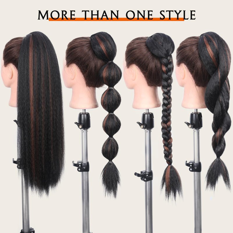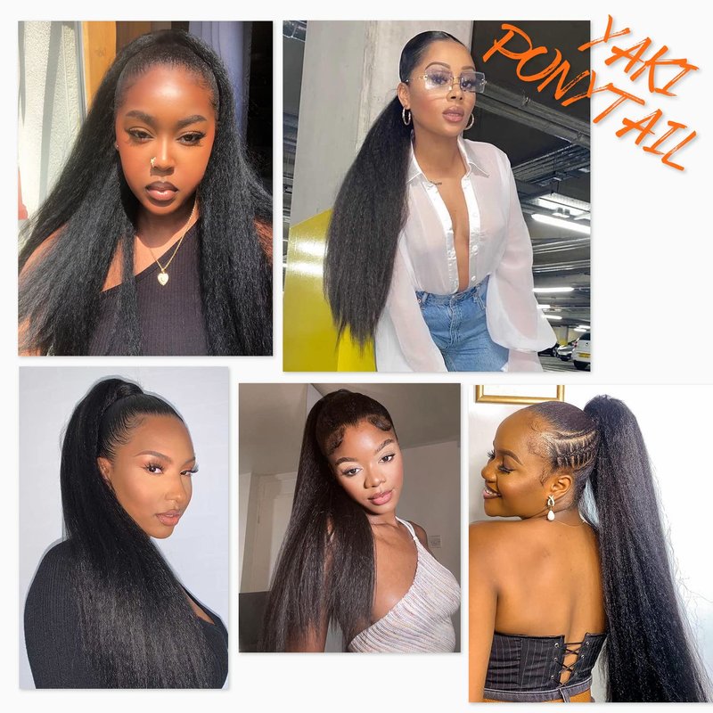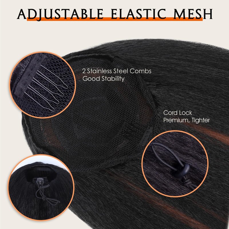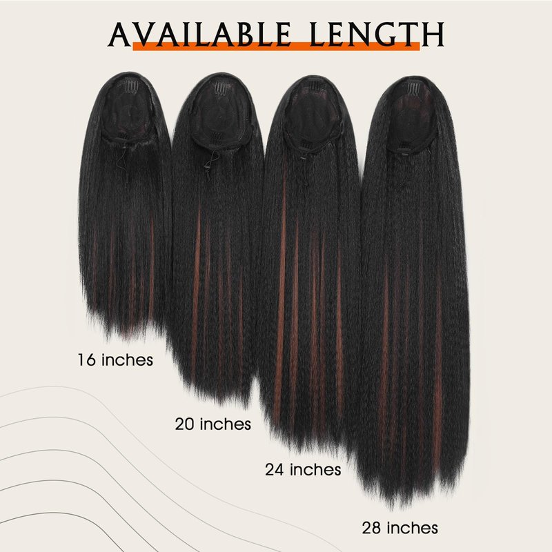 - Material&Texture: Great quality high temperature synthetic hair. Kinky straight ponytail with fully hair. Super softer touching and natural looking. Tangle-free and minimal shedding.