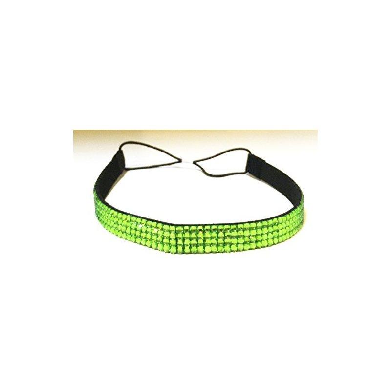 Wigspedia Rhinestone Crystal Stretch Headband 4-Row Head Piece Elastic Hair Band for Women (Lime Green)