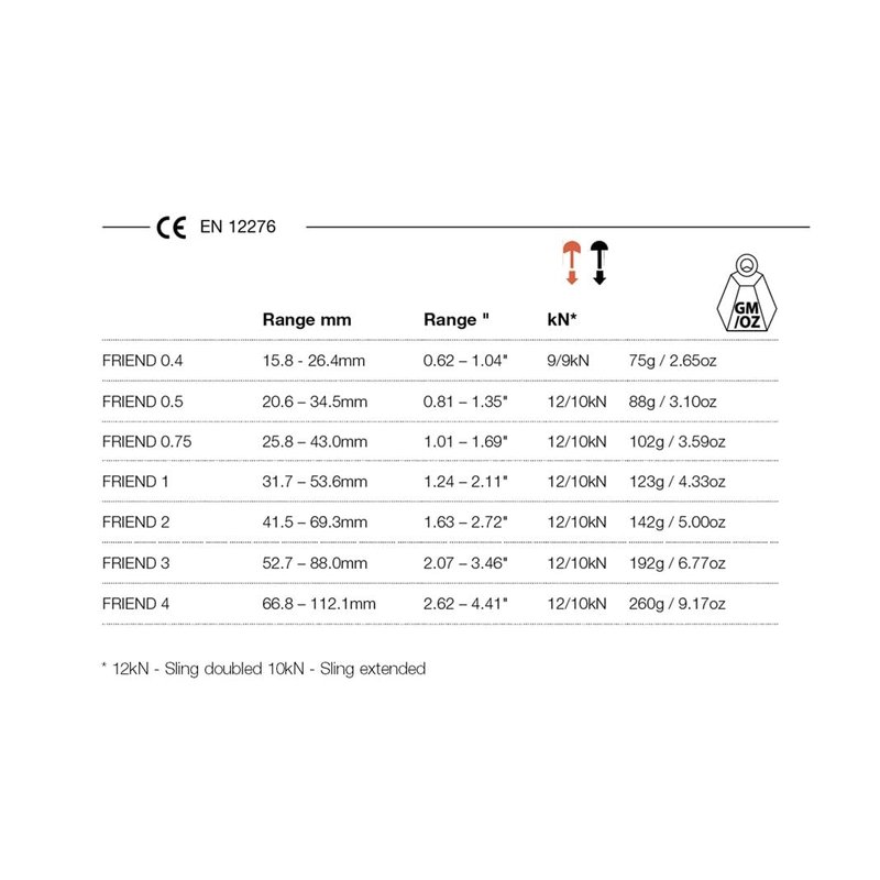 - Tech Specs | [Size] 1; [Range] 31.7 – 53.6mm (1.24 – 2.11in); [Strength] 12 / 10kN; [Weight] 4.33oz; [Head Width] 52.7mm.