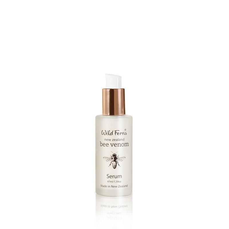 Wild Ferns New Zealand Bee Venom Serum 50ml This serum is designed to provide the beneficial effects of bee venom and nourish the deeper layers of your skin with precious nutrients. Combined with Royal Jelly which is considered to be one of the world’s most nutrient rich substances, containing 134 nutrients, the refining and revitalizing properties of this serum make it ideal to assist in diminishing the appearance of fine lines and wrinkles. When your skin needs an extra boost of rejuvenation this is the ideal concentrate to provide all that is essential for extra vitality and radiance. Wild Ferns uses VENZTM a form of been venom that is highly effective, ethical and humane, and that is supported by extensive biological research. Combined with the skin boosting benefits of Manuka Honey these key ingredients achieve the perfect balance to assist in the health, wellbeing and natural enhancement of the skin. Bee venom is produced in the venom gland of the bee, and is stored in an adjacent sac in the bee's abdomen. The amount of venom a bee has depends on age. Newly hatched bees don't have any venom at all, but the amount increases rapidly for the first two weeks of a worker bee's life, reaching a plateau of about 0.3mg (dry weight). VENZTM (Venom New Zealand) has invented a collection device for venom that doesn't kill the bees. The device consists of a glass sheet placed on the bottom of the beehive. The glass sheet conducts a gentle electric current. When the current is turned on, bees that are on the sheet automatically stick out their stingers, and the action of the muscles pushing the stinger also pumps a small amount of venom out the end of the sting. This venom falls on the glass where it is collected and purified for storage, and freeze-dried to ensure that the venom's bioactive materials are not degraded. It takes one million sting deposits on a collector board to make 1g of dry venom. This is the reason the cost of bee venom skin care products is so high.