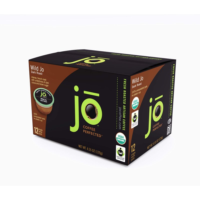 WILD JO: 12 Cup Organic Dark French Roast Compostable Coffee Pods for Keurig K-Cup Compatible Brewers | Bold Strong Rich Wicked Good | Eco-Friendly Single Serve | Fair Trade Certified Gluten Free