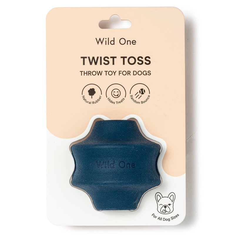 Wild One Twist Toss Dog Toy 100% Natural Rubber, Fun to Chew, Durable for Average Chewers, Fetch Toy, Treat Dispensing Blue