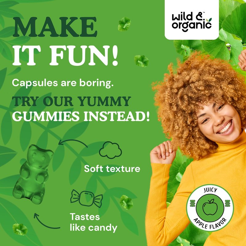 Maintaining a keen mind starts with these Wild & Organic Ginkgo Biloba Gummies!