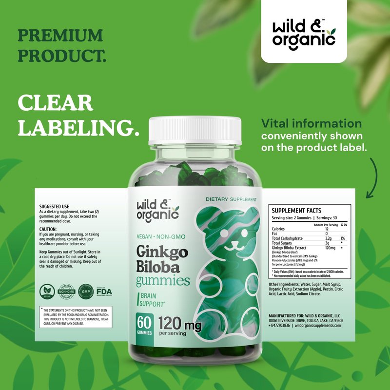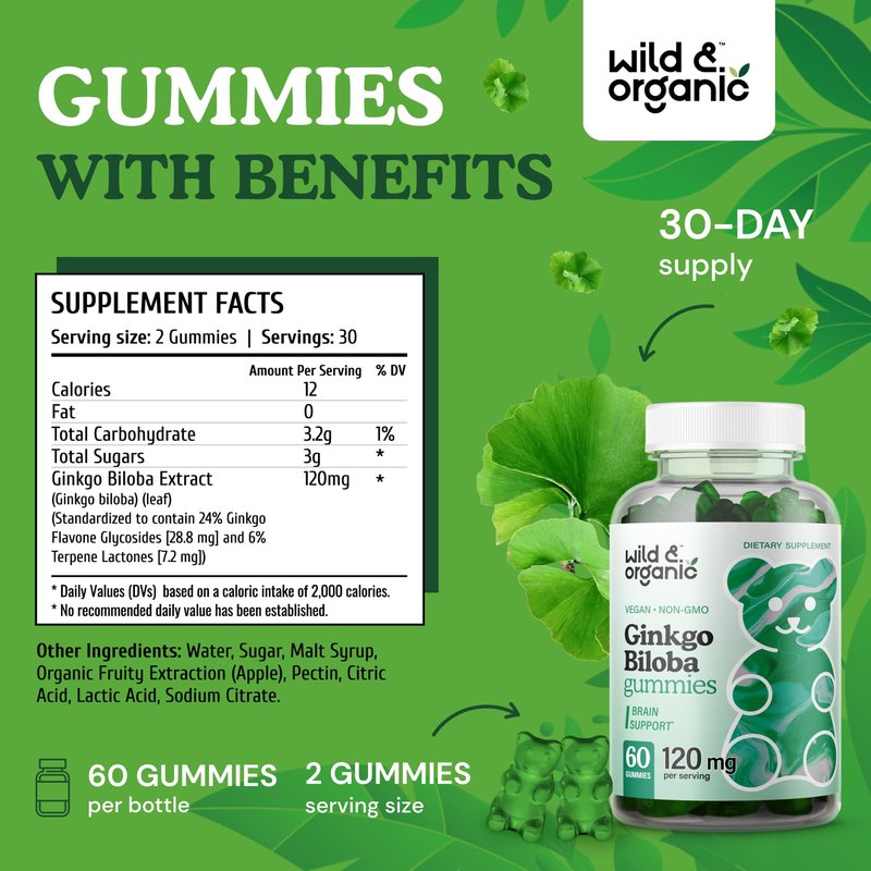 Take the right steps in sustaining a sharp, robust mind. Add these Wild & Organic Ginkgo Biloba Gummies to your cart TODAY!