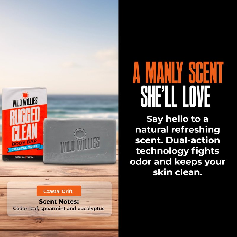 - π π₯πππ₯ππ¦πππ‘π ππππ§ ππ’π₯ π ππ‘: Give the gift of confidence with Wild Willies Men's Moisturizing Soap Bar in Coastal Drift scent. Perfect for men seeking skincare that washes away sweat, dirt, and body odor, ensuring freshness, cleanliness, and confidence all day long.