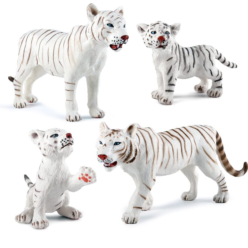 Wildlife Animal Figures Tiger Model Figurines Playsets 4 PCS White Tigers Family Party Favors Cake Toppers School Project Desktop Decoration Cognitive Toys for Boys Girls Kids