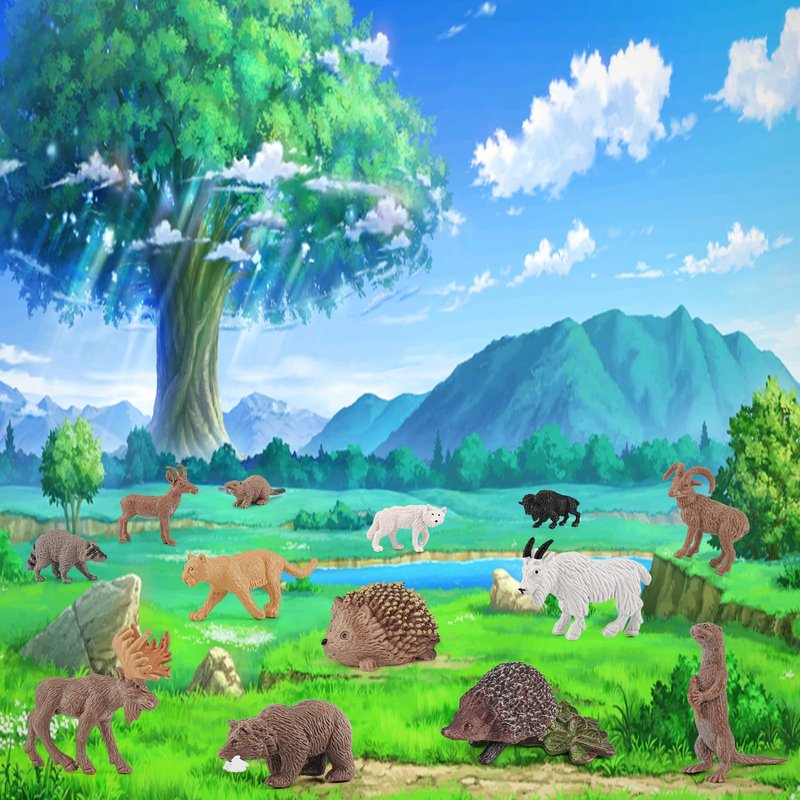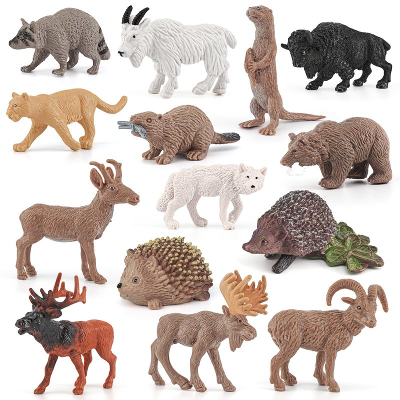 Wildlife Animal Model Playsets 14 PCS North American Animal Hedgehog Echidna Figures Figurine Family Party Favors Supplies Cake Toppers Set Toys for 5 6 7 8 Years Old Boys Girls Kids