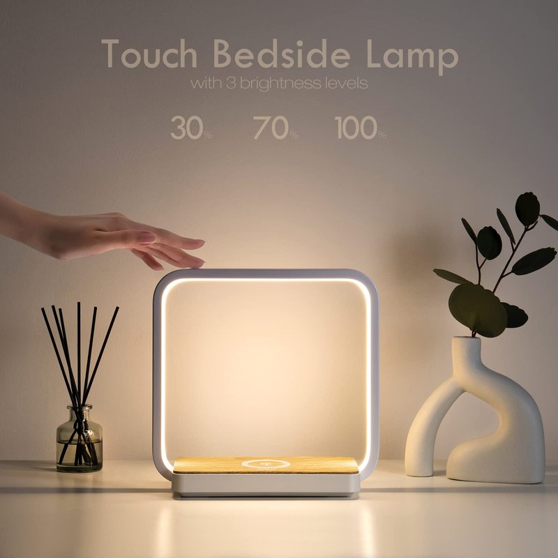 WILIT Bedside Lamp with Qi Wireless Charger, A13 Table lamp 3 Step Dimmable Touch Control Desk Lamp for for Living Room, Bedroom, Kids Room.
