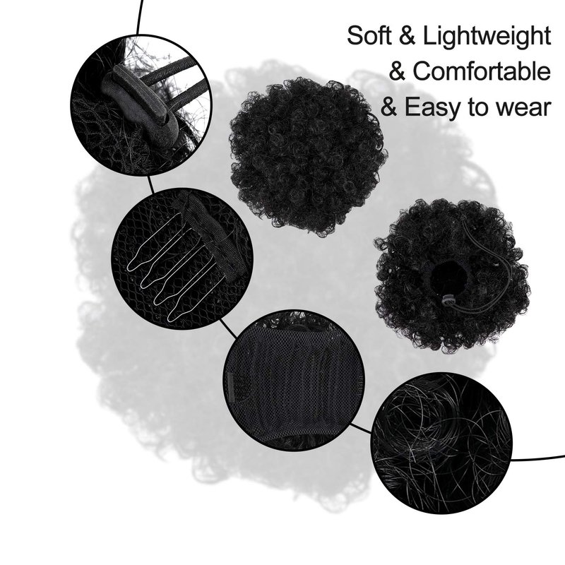 - Soft material: the Afro bun drawstring extensions are made of high temperature flame retardant wire material, soft, lightweight, comfortable, easy to wear and thick