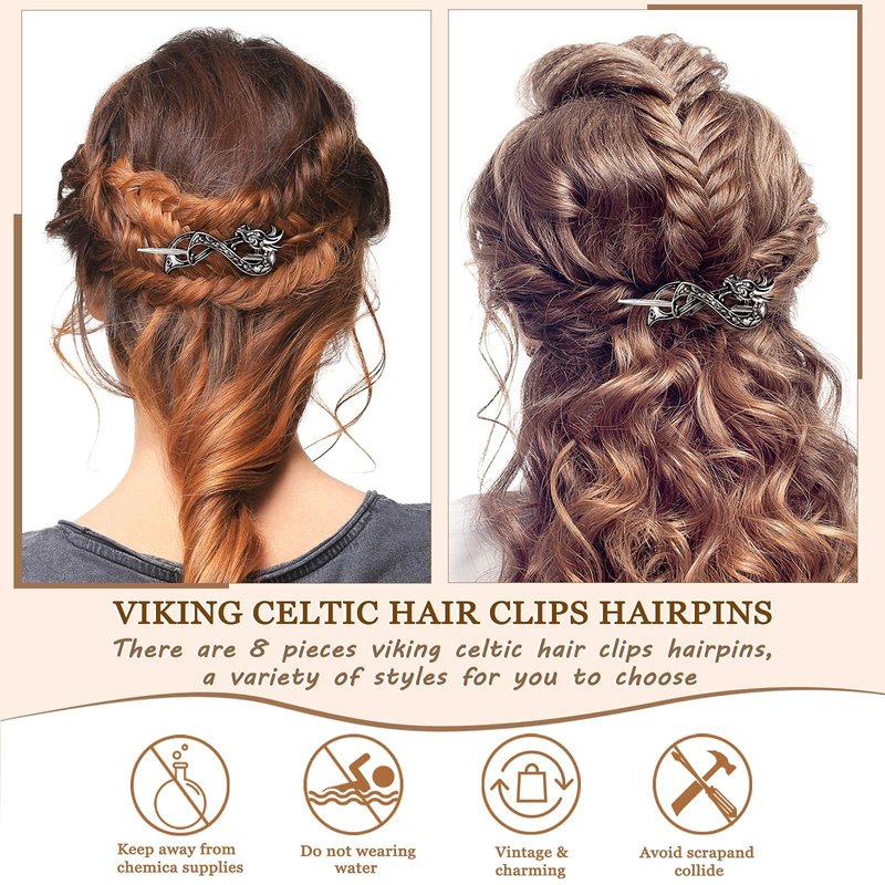 - Various styles in one set: you will get 8 pieces of Viking Celtic hair clips hairpins, a variety of styles for you to choose, a sufficient quantity is enough to meet your daily wearing needs, which is an excellent accessory and decoration for ladies and girls