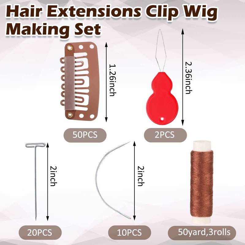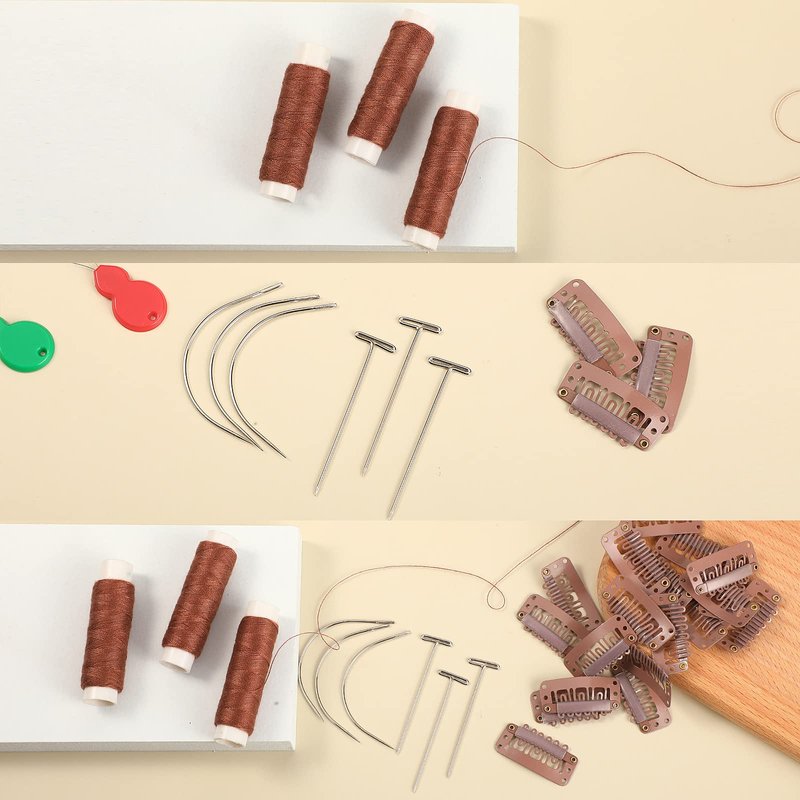 These wig clips, t-pins, curved needles are suitable for wigs making, hair extension making and other sewing crafting.
