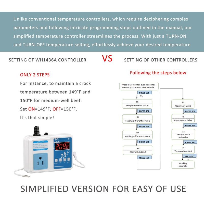 - WE'VE IMPROVED THE TEMP CONTROLLER: This is NOT a humidity controller! Simplified operation, larger power, wider control range, standard U.S. outlet, enhanced waterproof sensor probe. Get the new version right now. NO WIFI connection!