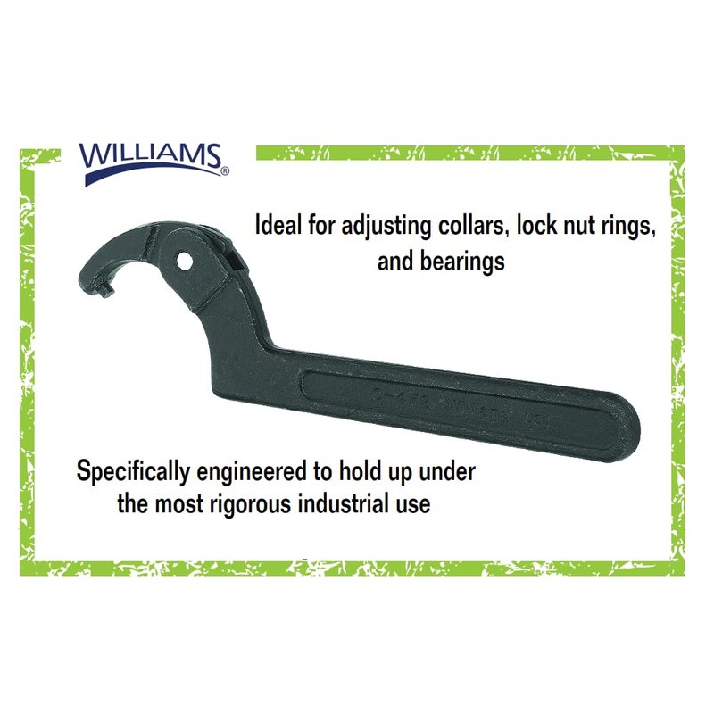Williams JHW472 Adjustable Hook Spanner Wrench with Span Diameter of 1-1/4 to 3-Inch, Ideal for Adjusting Collars, Lock Nut Rings, and Bearings