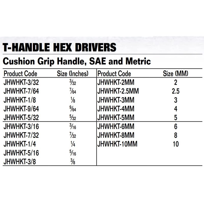 Williams JHWHKT-4MM T-Handle Hex Driver with Cushion Grip Handle - 4mm